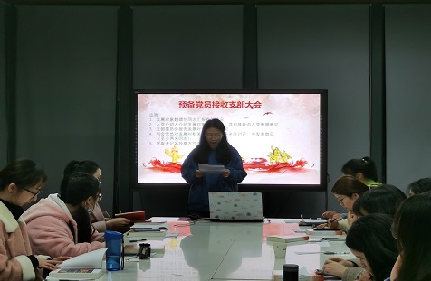 本次会议第一项是预备党员接收大会,由党支部副书记杨金艳主持。
