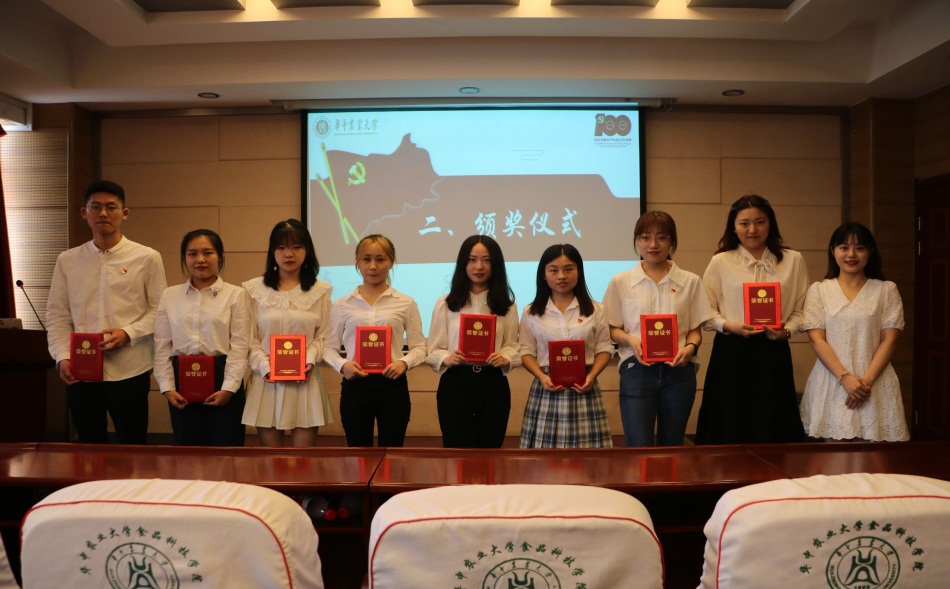 开展“庆祝建党一百周年”暨学院学生工作表彰大会。会上由主持人宣读表彰决定,占福朝、丁一峰等25名学生获得“优秀共产党员”荣誉称号,戚清林、盛丽等10名学生活动“优秀学生骨干”荣誉称号,由食科院研究生辅导员张静妍为获奖学生进行颁奖