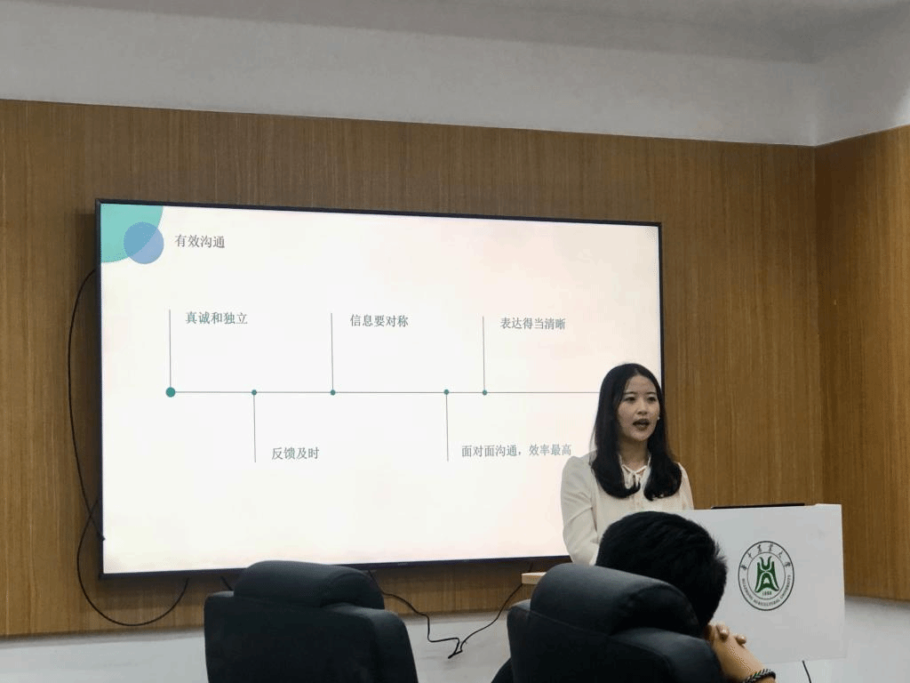 曾任研究生会主席的汪诗琪师姐就学生工作及考公经验进行了交流分享。汪诗琪师姐从学生工作、有效沟通和考公经验三个方面讲述了自己的故事。“活在当今的这个时代下,我们必须要把握政治大局,胸怀‘国之大者’。”她认为学生工作必须要有责任感和使命感,肩负起属于自己的那一份责任;和导师沟通一定要真诚有效,最好是面对面沟通交流,以便更好的表达自己的想法;对于考公的经验汪诗琪师姐详细的耐心讲述了编制考试的区别、待遇福利、公务员录用程序等一系列相关的问题,为同学们指点迷津。“职业规划必不可少,但与科研不冲突,我们要有所偏重,先注重当下规划,后做长期计划,要对自己充满信心!”
