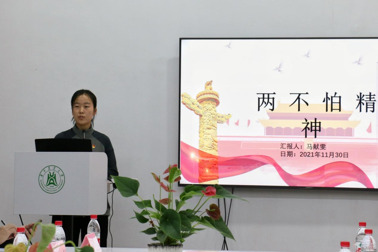 “两不怕精神”是什么?不怕苦,不怕累。不对,是不怕苦,不怕死!食研2102班马献雯感慨到正是由于无数革命先辈浴血奋战,舍生忘死,才能在这个并不安全的世界有了一方相对安静的领土。食研2003班李媛媛用这样一句话点燃了所有在场师生内心的爱国之情:抗战,是为国泰民安而战;外交,是为和谐共存而言;读书,是为中华之崛起而读书!正是有了许多平凡的人在不平凡的岗位上所做出的努力,才有了我们中国明媚的今天。本科生食安1903班王淑蕊用最平凡的话语却向我们讲述了西南大学李加纳教授“油菜教师团队”最不平凡的事迹,“扎根田间,情系‘三农’,心有大我,至诚报国”是对李加纳教授最好的评价!