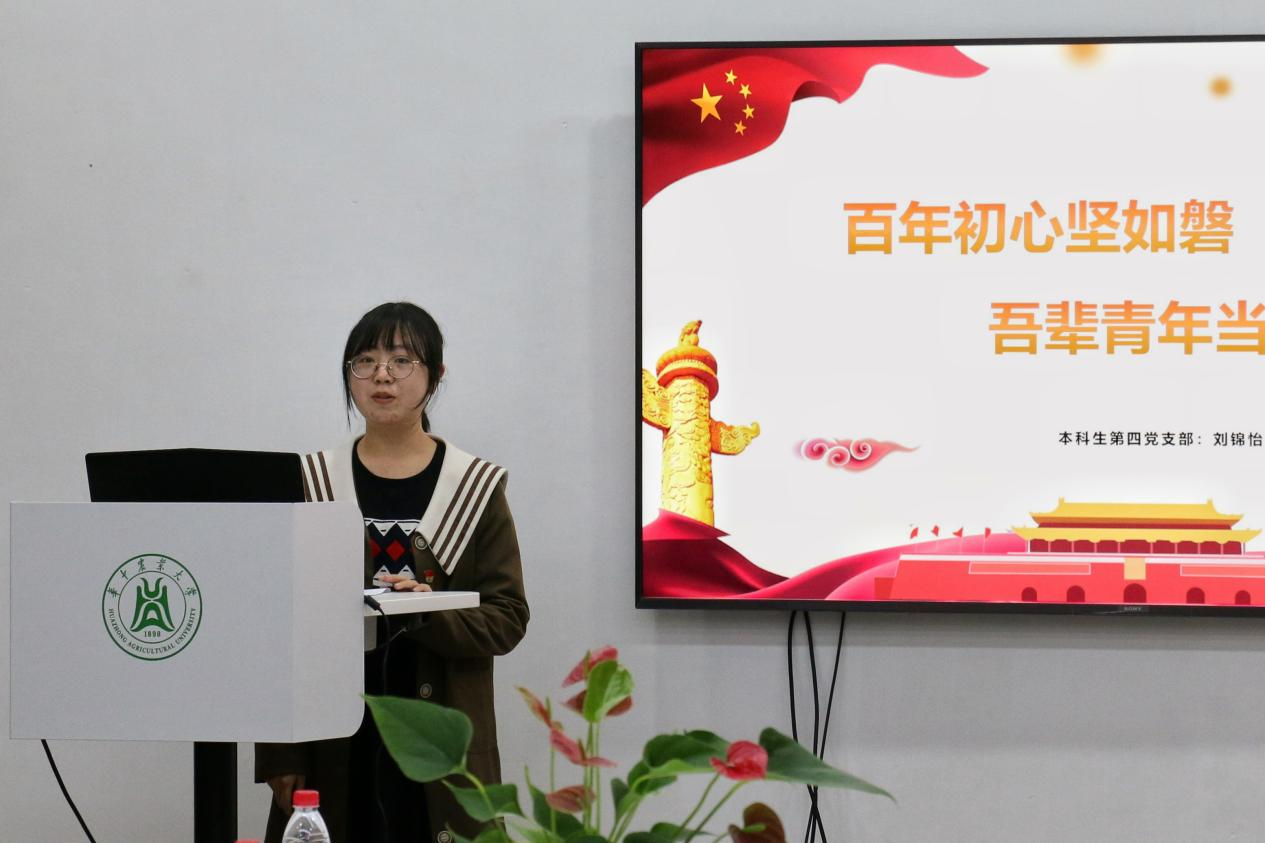 “为什么是中国?” “因为中国共产党的领导,因为亿万万中华儿女的共同努力奋斗,因为那百年如磐、坚定不变的初心。” 本科生食安1904班的刘锦怡坚定地告诉我们本就该是中国,也终将会是中国!“我将无我,不负人民”激励着所有青年党员更要努力用知识武装自己,为中华民族实现第二个百年奋斗目标交出满意的答卷。