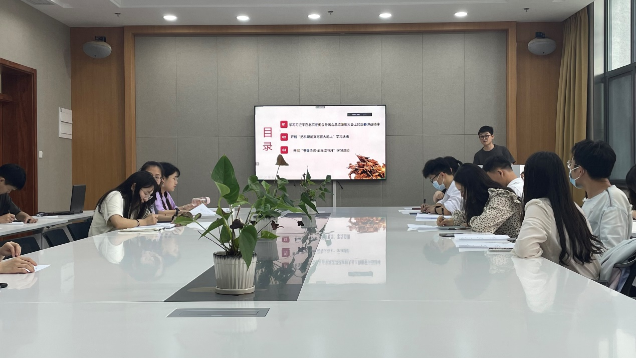 活动中,首先由学生党员贾克涛带领全体支部党员及积极分子通过PPT的形式学习了习近平在北京冬奥会东残会总结表彰大会上的重要讲话精神;在考察海南省三亚市数所提及的“把科研论文写在大地上的”讲话;此外,四月是读书月,2021年4月23日将迎来第27个世界读书日。学生党员贾克涛也积极大方的分享了自己读书体验,学习感受,鼓励大家多读书读好书。