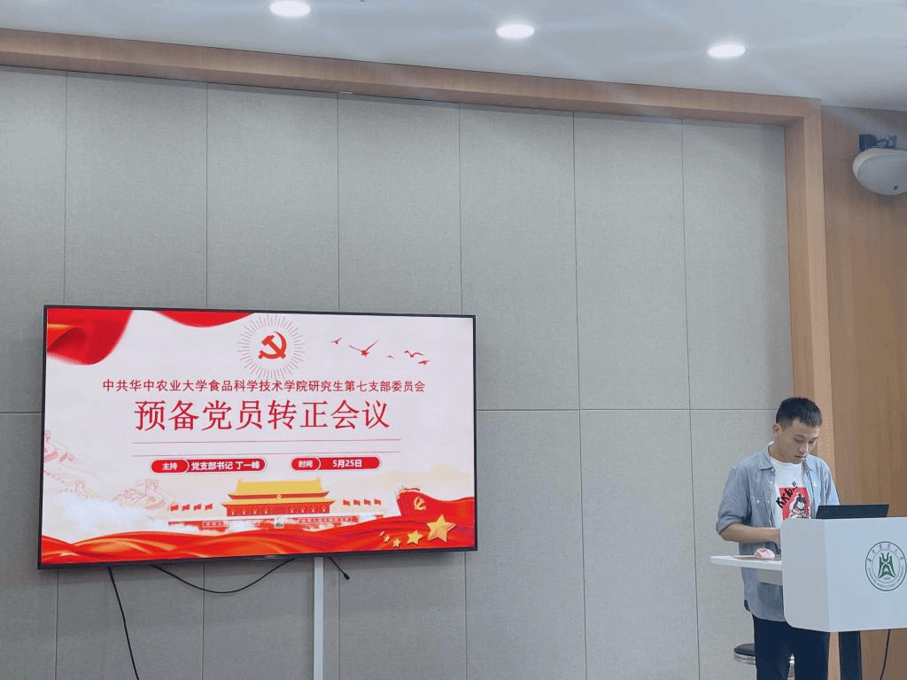 研究生第七党支部于工科楼122会议室召开五月主题党日暨预备党员转正会议。30余名支部党员及入党积极分子到场参加,会议由支部书记丁一峰主持。
