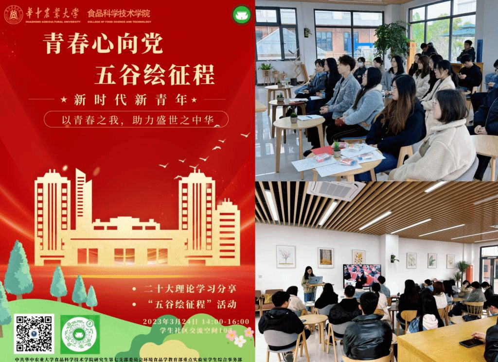 时代号角催人奋进,历史使命责无旁贷。时代召唤,青年自强,牢记初心,践行使命,食科院研究生第七党支部也必将带领全体党员将青春的热血洒在祖国的热土之上,勇做走在时代前列的奋进者、开拓者、奉献者。