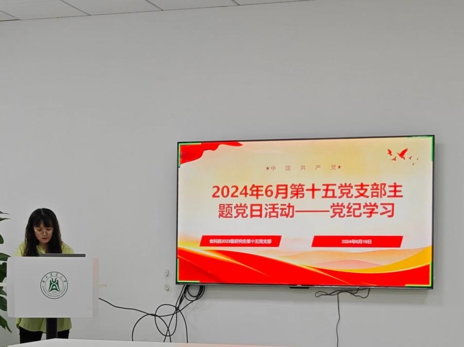 研究生第十五党支部在工科楼120会议室顺利开展6月支部主题党日活动暨组织生活会,此次活动旨在强化党员的纪律意识,加强党的纪律建设,进一步推进全面从严治党向纵深发展。活动由支部副书记袁梦缘同志主持。