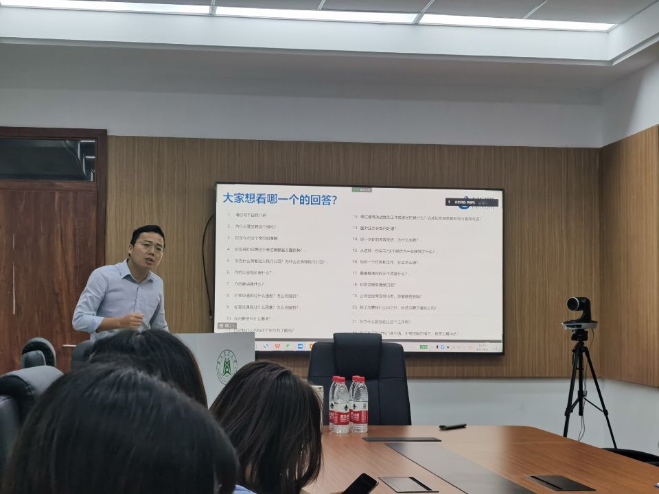 最后学院成立了就业协调小组并对新一年度就业工作进行了培训和部署,张静妍老师以就业市场和渠道、职场环境认知、求职准备和后疫情时代就业认知四个方面为主要内容对就业协调小组展开培训。张老师谈道每年10-11月和3-4月为招聘集中期,也是求职就业最佳时期。目前校园招聘依旧是主渠道但有所弱化,而网申趋势逐渐明显,且通过师兄师姐内部推荐渐成趋势,先实习再签约的现象也有所突出。她还强调毕业生的观念认识也应转变,从“被动求职”应转变为“主动谋职”,在薪酬方面从“自己愿要”转变为“企业能给”。最后张老师强调,面试的核心目标就是让面试官舒服并且喜欢你。