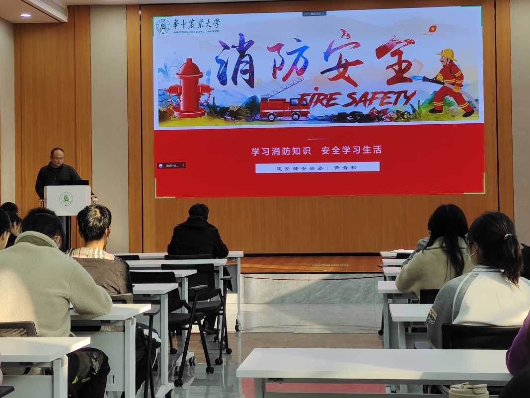 针对消防安全及实验室安全管理,黄青松从火场逃生及消防安全基本常识、日常火灾事故预防、火灾现场处置等方面向师生进行了详细讲解。他表示,学校消防安全关系到各位师生的生命财产安全,希望广大师生重视消防安全,提高消防安全意识。