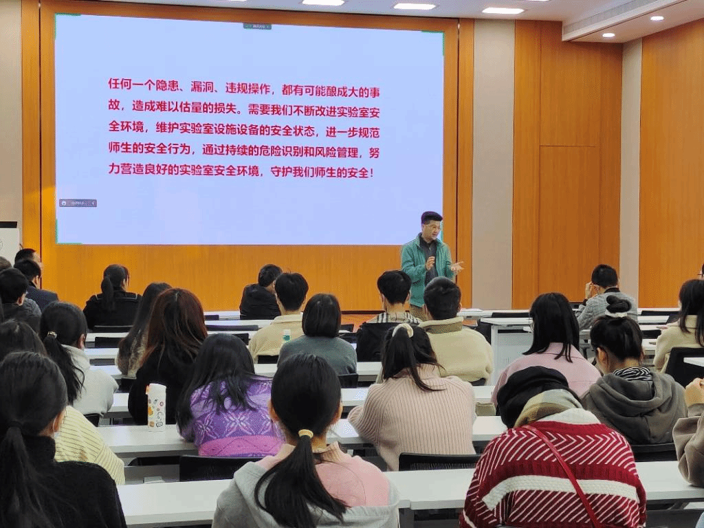 实验室安全管理存在的问题,针对危化品管理、实验室常发状况及处理办法做了强调和总结。他表示,不防于小,终亏大德,希望师生从细节小事做起,重视实验室安全管理,强化实验室安全意识,严格遵守学校学院相关安全管理规范,了解实验室安全隐患,做好安全工作。