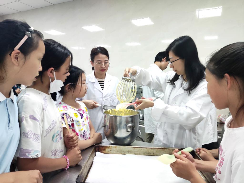 活动伊始,食科院宋蓉老师和唐翠娥老师为同学们上了一堂有趣的美食知识课。老师们向同学们介绍了制作饼干的材料和搭配使用技巧,让孩子们对食材有了更深入的了解。接着,老师们讲解了制作饼干的具体步骤,让同学们明白饼干是如何从原材料变成可口的小食品的。